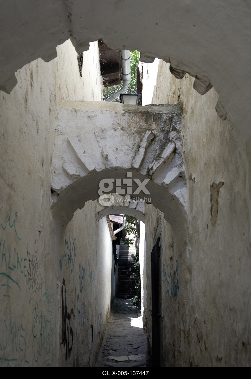Mediterrán hangulatú sikátor Szentendre belvárosában.