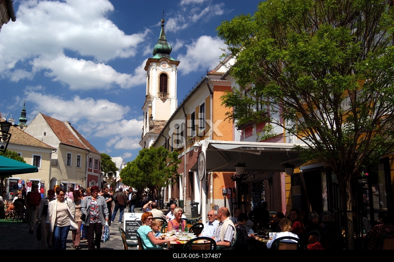 Szentendre, Fő tér. A Fő tér színpompás barokk, rokokó és copf stílusú házai megőrizték a régi kereskedőházak arányát. Építtetőik, a török elől Szentendrére menekült szerb és görög kereskedők, magukkal hozták mediterrán világukat, melynek hangulatát beleépítettek a házak köveibe.