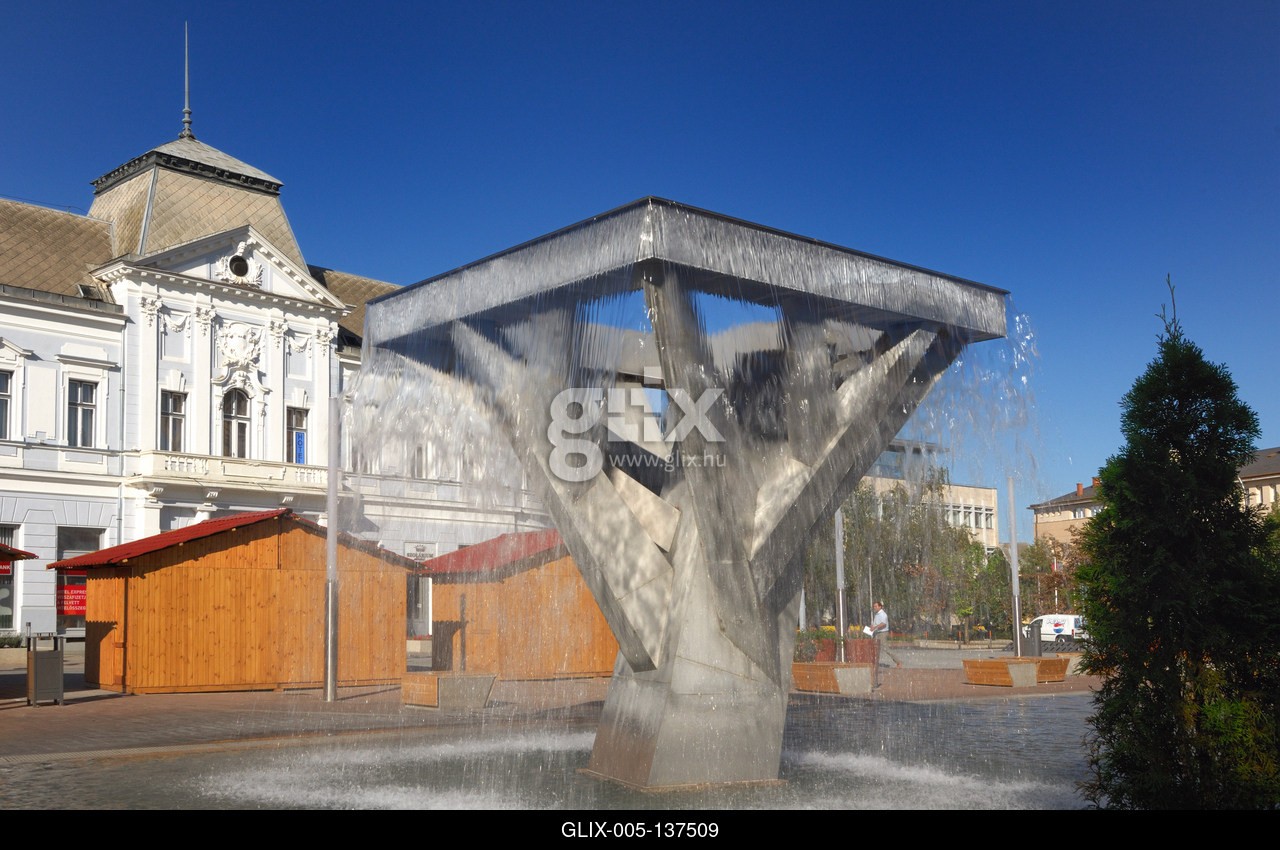 Nyíregyháza felújított belvárosa. Szökőkút a Kossuth téren.