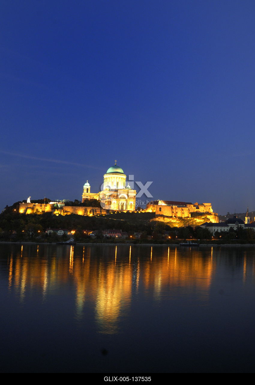 Az Esztergomi bazilika esti kivilágításban