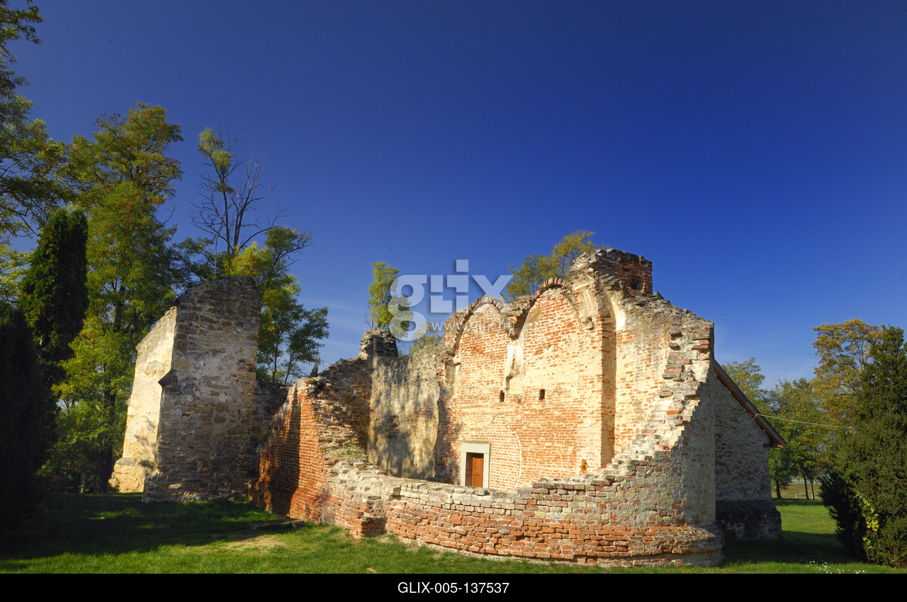 Rádpuszta - Balatonlelle, Árpádkori romtemplom. A templom a XIII. század első felében, román stílusban épült, faragott homokkőből és téglából. A XIII. századi maradványok. Az 1332-37-es tizedjegyzék szerint már volt plébániája és temploma, mely mára erősen leromlott. A meglévő fal 8-10 méter magas. A boltozati elemek csatlakozása még ma is jól látható. A falakon kívüli támpillérek egy része is áll még.