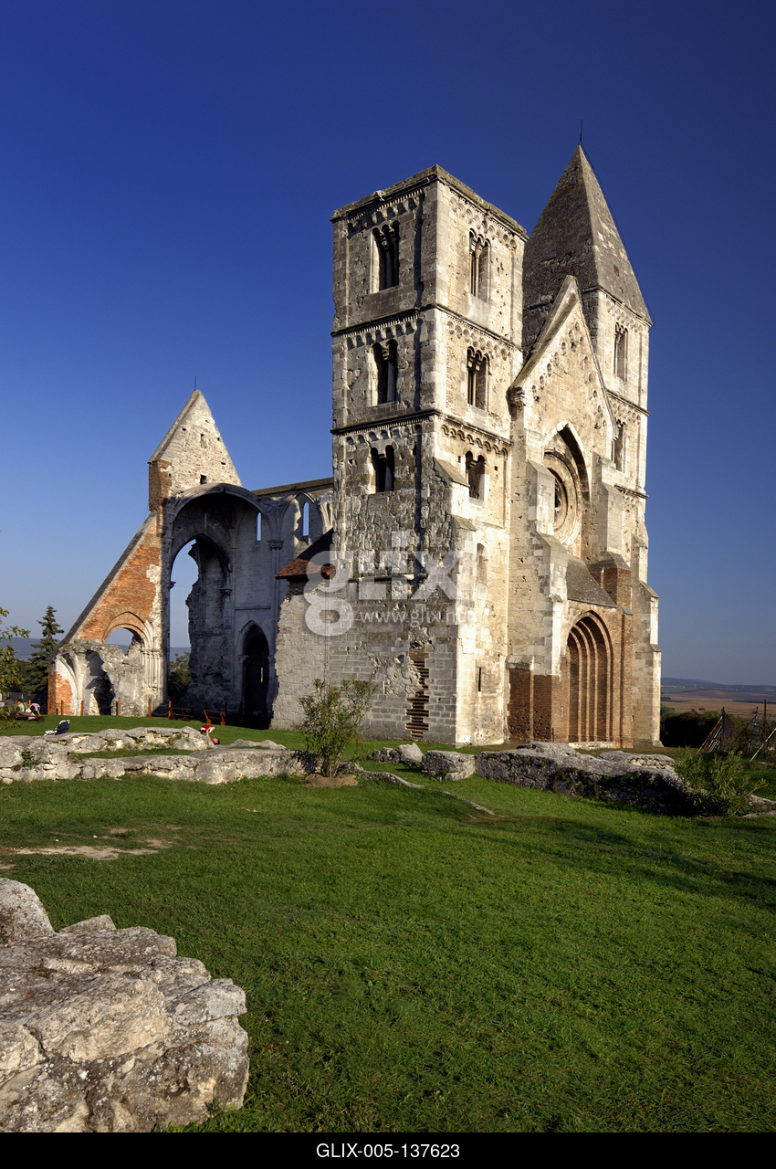 Zsámbék, a premontrei kolostor és templom romjai. A templomrom egész pontosan egy háromhajós premontrei bazilika és kolostor maradványai, melyek a 13. század közepén 1220-34 között épültek késő román - korai gótikus stílusban. 1763-ban a nagy komáromi földrengés rombolta le, azóta áll ebben az állapotában.