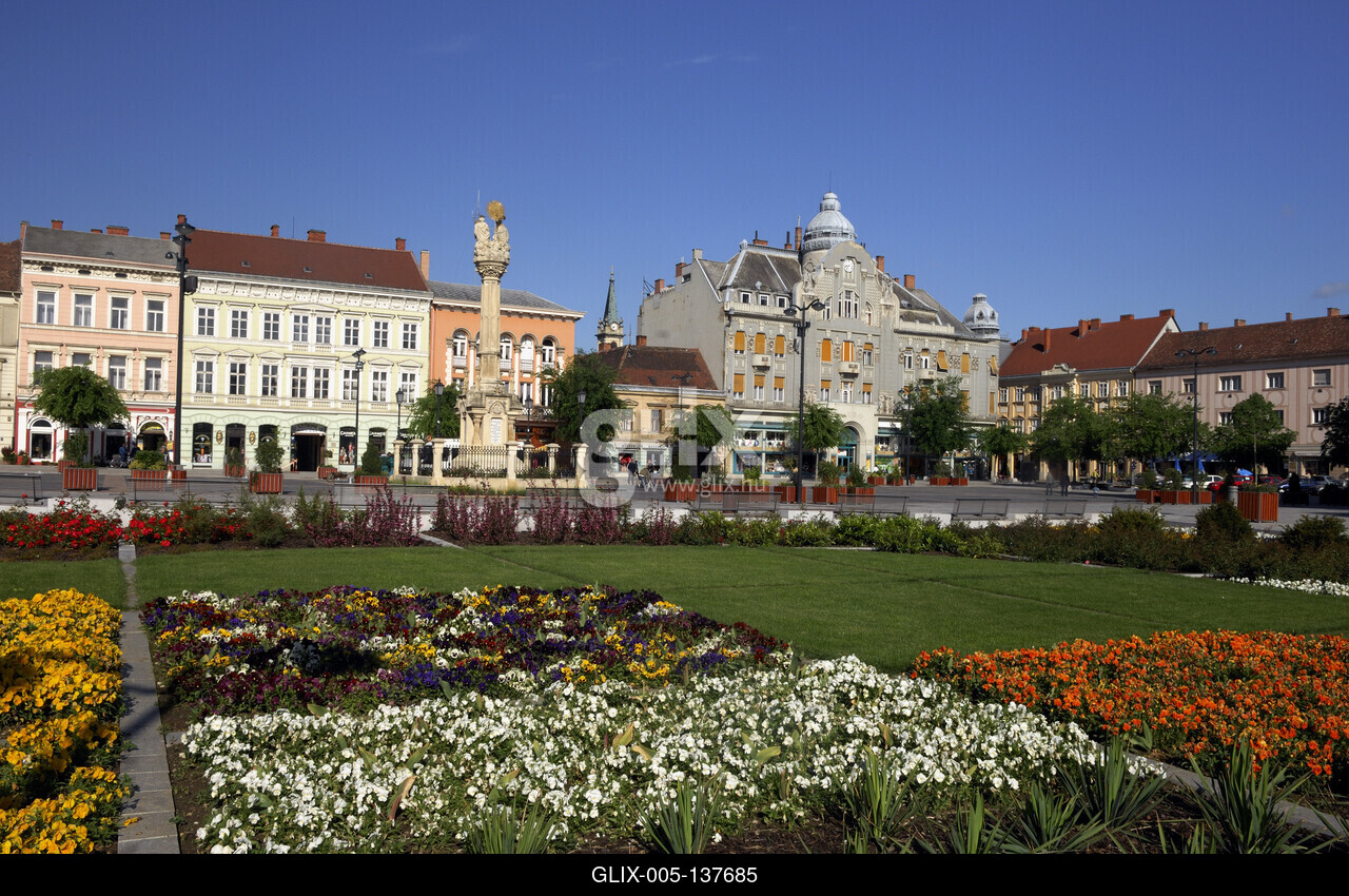 Szombathely, Fő tér. A történelmi belváros szerkezetében máig őrzi középkori formáját. A Fő tér, korábban piactér adott helyet több évszázadon keresztül a szombathelyi heti és országos vásároknak.