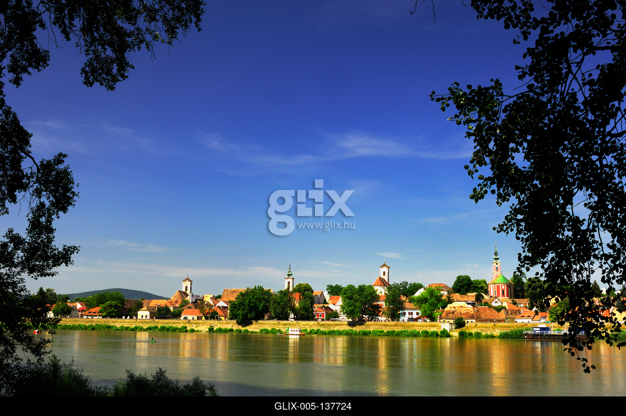 Szentendre látványa a Szentendrei-sziget felől. Szentendre a Dunakanyar kapujában, a (Visegrádi-hegység) és a Duna találkozásánál, a Szentendrei-szigettel szemben, gyönyörű természeti környezetben található. Elsősorban művészetével és kultúrájával ragadja magával a látogatót.
