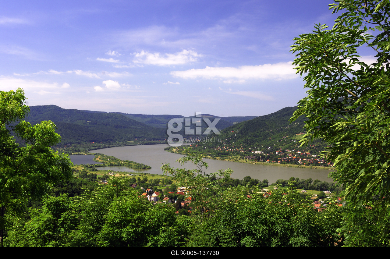 Visegrád, a Dunakanyar látképe a Fellegvárból, a Visegrádi-hegységgel és a Börzsönnyel.