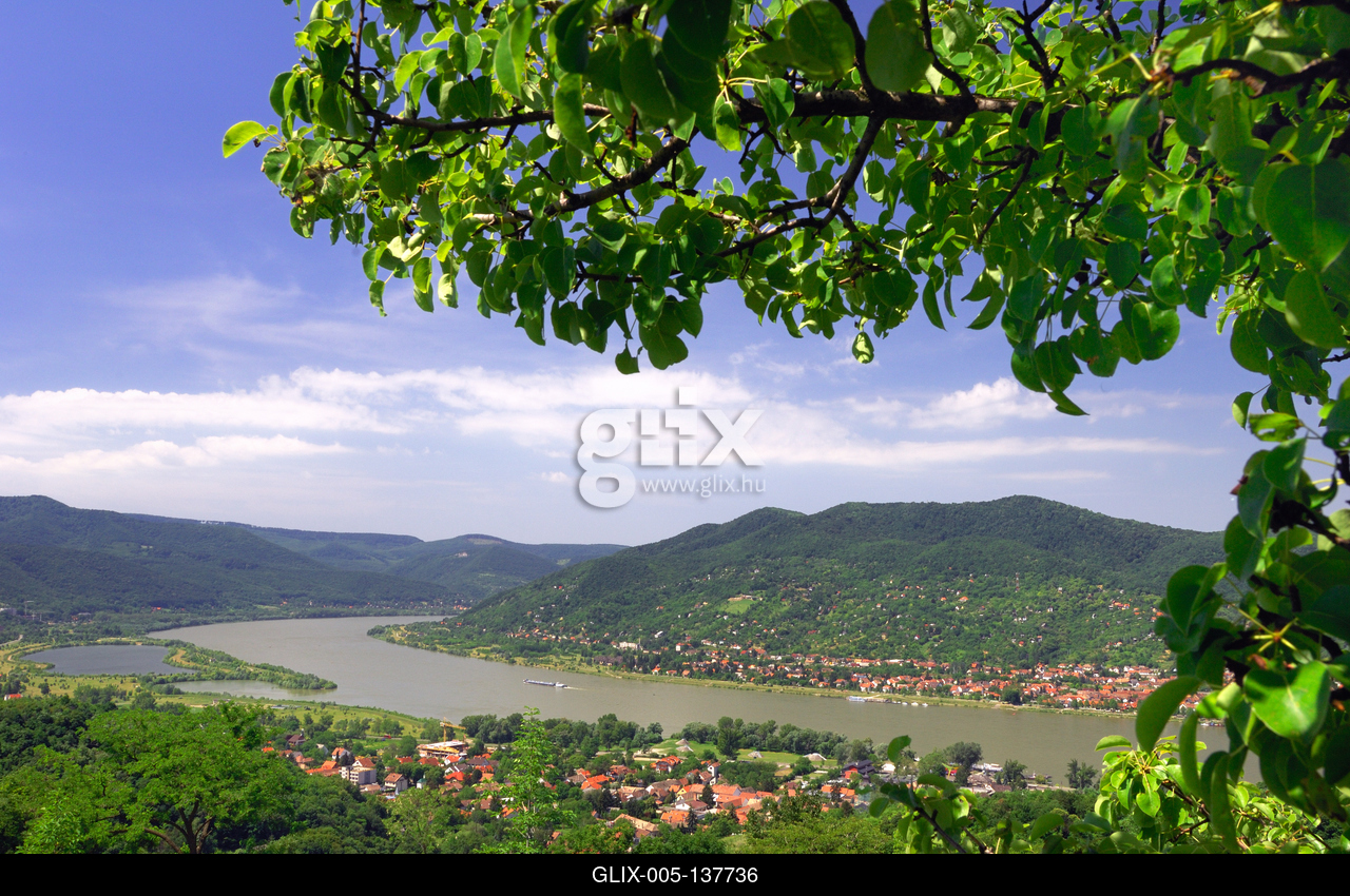 Visegrád, a Dunakanyar látképe a Fellegvárból, a Visegrádi-hegységgel és a Börzsönnyel.
