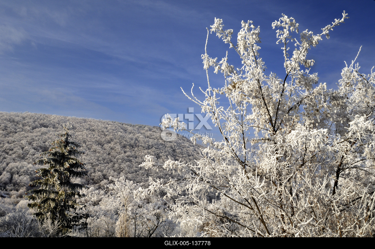 Zúzmarás erdő télen, az országhatár mellett, Somoskő környékén.