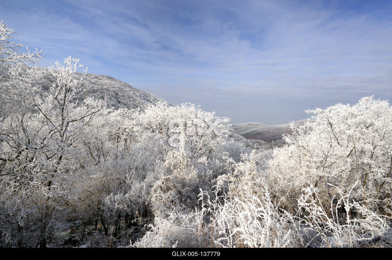 Zúzmarás erdő télen, az országhatár mellett, Somoskő környékén.