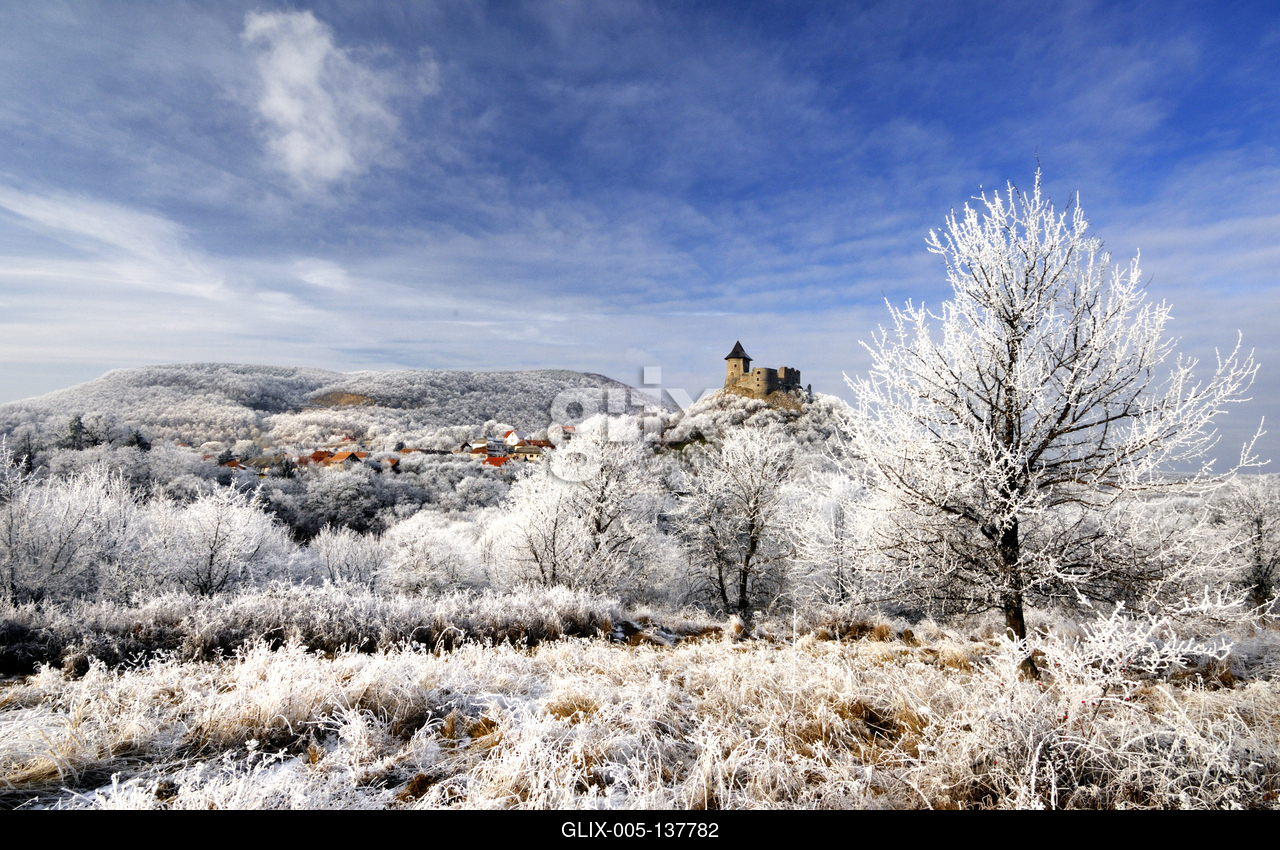 Téli tájkép Somoskő várával. A szlovák-magyar határon áll a Somoskői vár. A középkori várból csodás kilátás nyílik a környék településeire. A várhegytől rövid séta után eljuthatunk a somoskői bazaltorgonákhoz, melyek a területen lejátszódó, egykori vulkanizmus gyönyörű bizonyítékai.