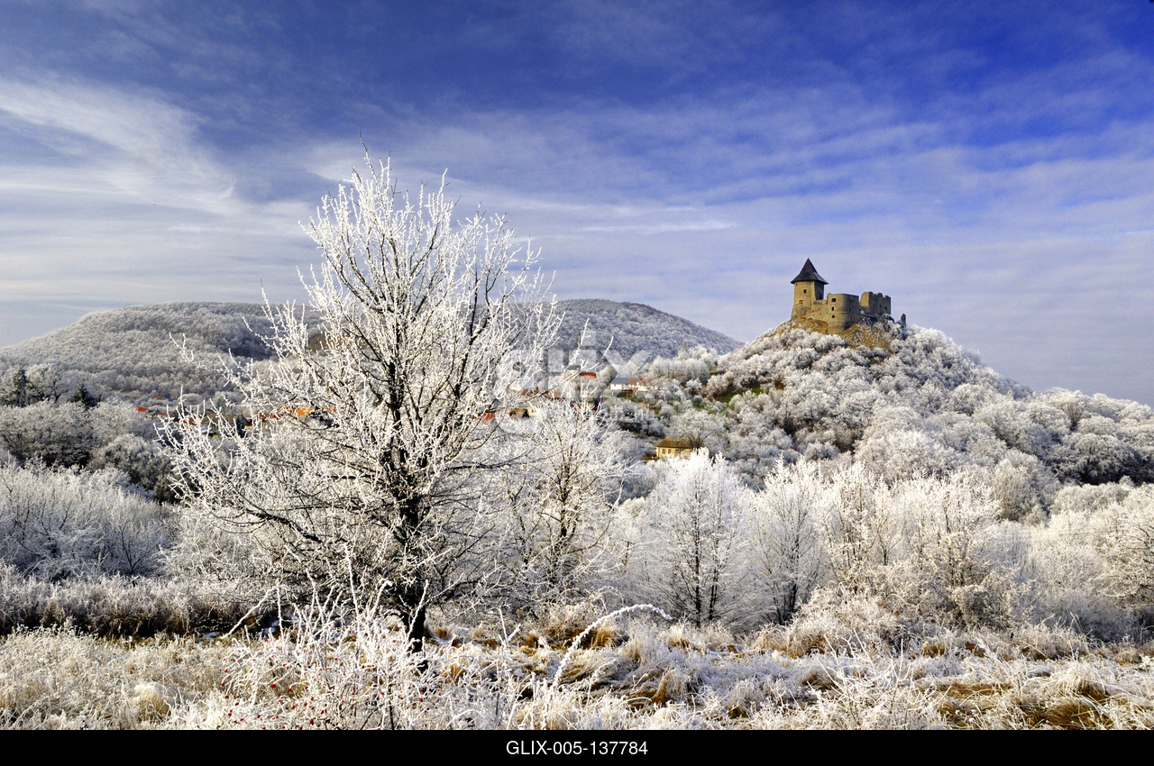 Téli tájkép Somoskő várával. A szlovák-magyar határon áll a Somoskői vár. A középkori várból csodás kilátás nyílik a környék településeire. A várhegytől rövid séta után eljuthatunk a somoskői bazaltorgonákhoz, melyek a területen lejátszódó, egykori vulkanizmus gyönyörű bizonyítékai.