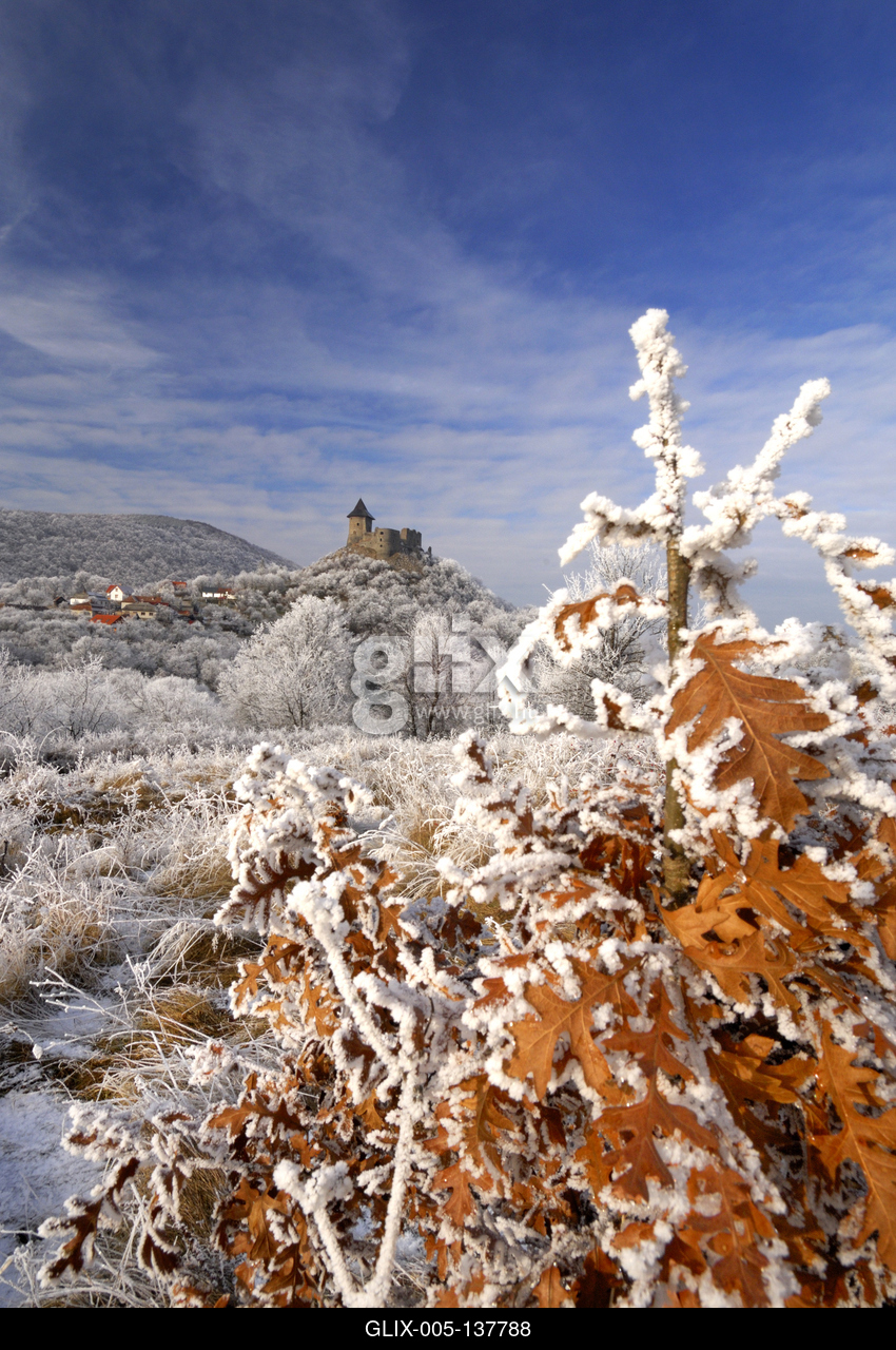 Téli tájkép Somoskő várával. A szlovák-magyar határon áll a Somoskői vár. A középkori várból csodás kilátás nyílik a környék településeire. A várhegytől rövid séta után eljuthatunk a somoskői bazaltorgonákhoz, melyek a területen lejátszódó, egykori vulkanizmus gyönyörű bizonyítékai.