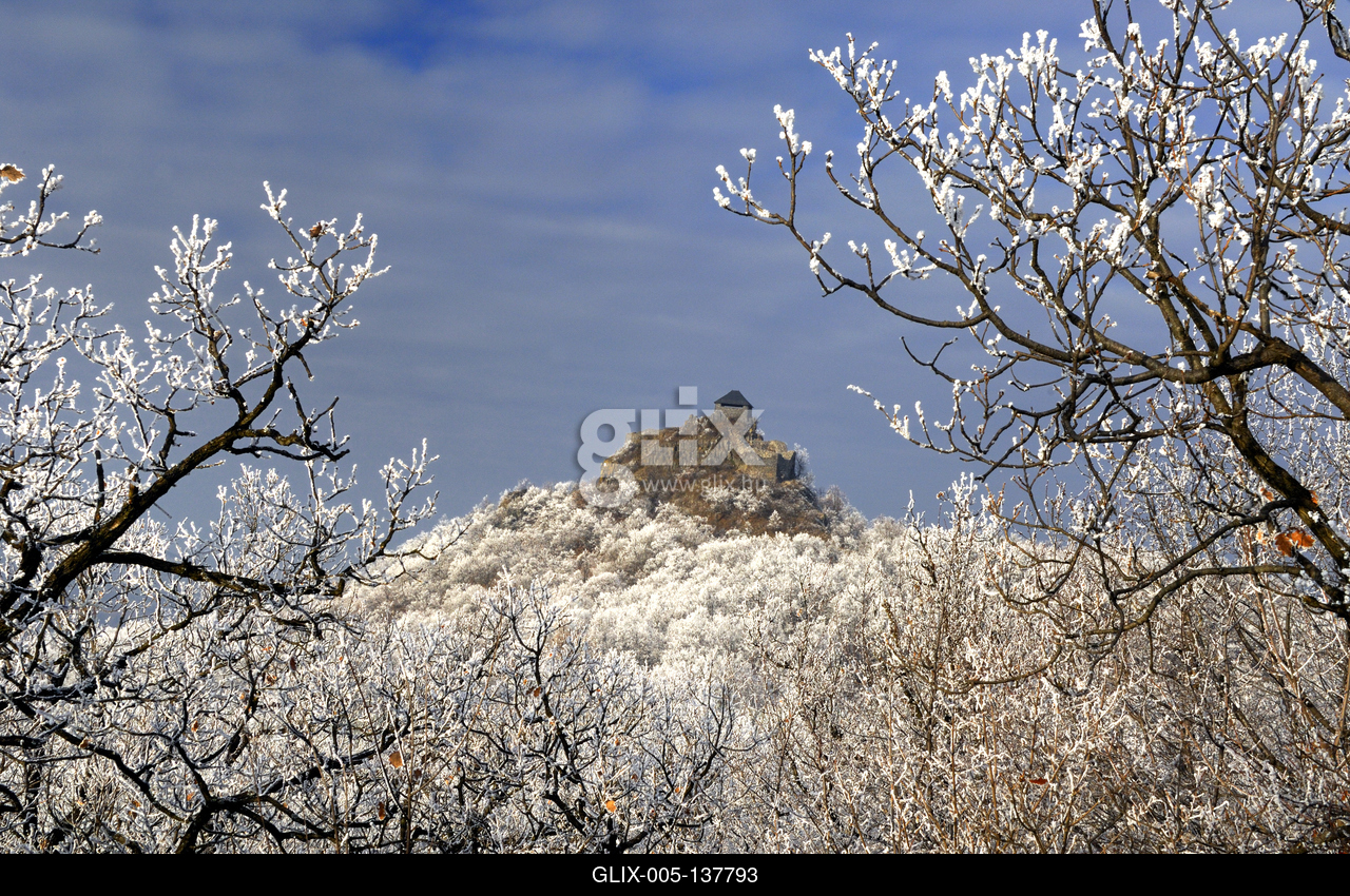 Téli tájkép Somoskő várával. A szlovák-magyar határon áll a Somoskői vár. A középkori várból csodás kilátás nyílik a környék településeire. A várhegytől rövid séta után eljuthatunk a somoskői bazaltorgonákhoz, melyek a területen lejátszódó, egykori vulkanizmus gyönyörű bizonyítékai.