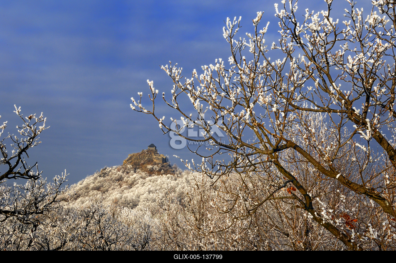 Téli tájkép Somoskő várával. A szlovák-magyar határon áll a Somoskői vár. A középkori várból csodás kilátás nyílik a környék településeire. A várhegytől rövid séta után eljuthatunk a somoskői bazaltorgonákhoz, melyek a területen lejátszódó, egykori vulkanizmus gyönyörű bizonyítékai.