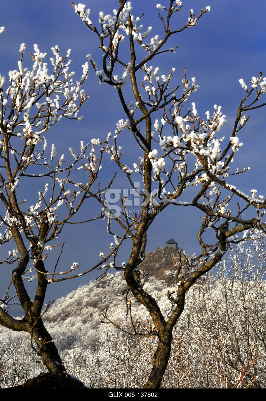 Téli tájkép Somoskő várával. A szlovák-magyar határon áll a Somoskői vár. A középkori várból csodás kilátás nyílik a környék településeire. A várhegytől rövid séta után eljuthatunk a somoskői bazaltorgonákhoz, melyek a területen lejátszódó, egykori vulkanizmus gyönyörű bizonyítékai.