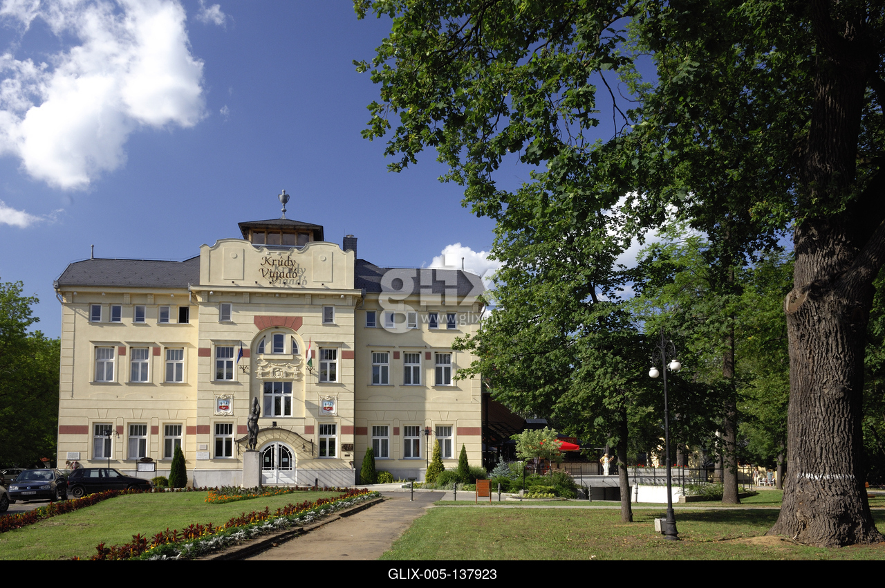 Nyíregyháza (Sóstófürdő), Krúdy Vigadó. A Krúdy Vigadó 1911-ben épült fel Pazár István tervei szerint Nyíregyháza-Sóstón. Az épület terveihez Pollack Mihály, majd Feszl Frigyes Pesti Vigadója jelentette a legfontosabb mintát.