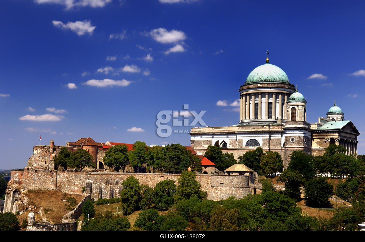Az Esztergomi bazilika (Nagyboldogasszony- és Szent Adalbert-főszékesegyház) látványa a Várhegyen.