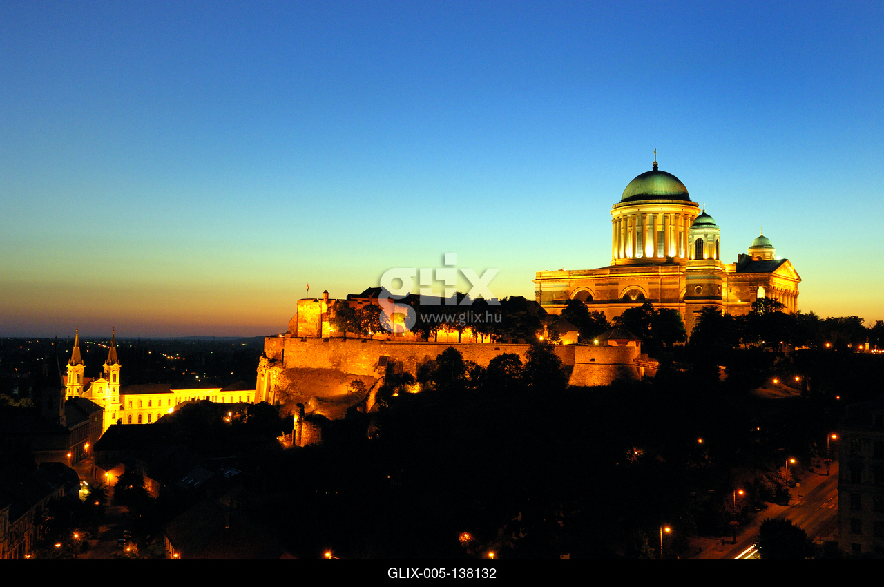 Az Esztergomi bazilika látványa esti kivilágításban