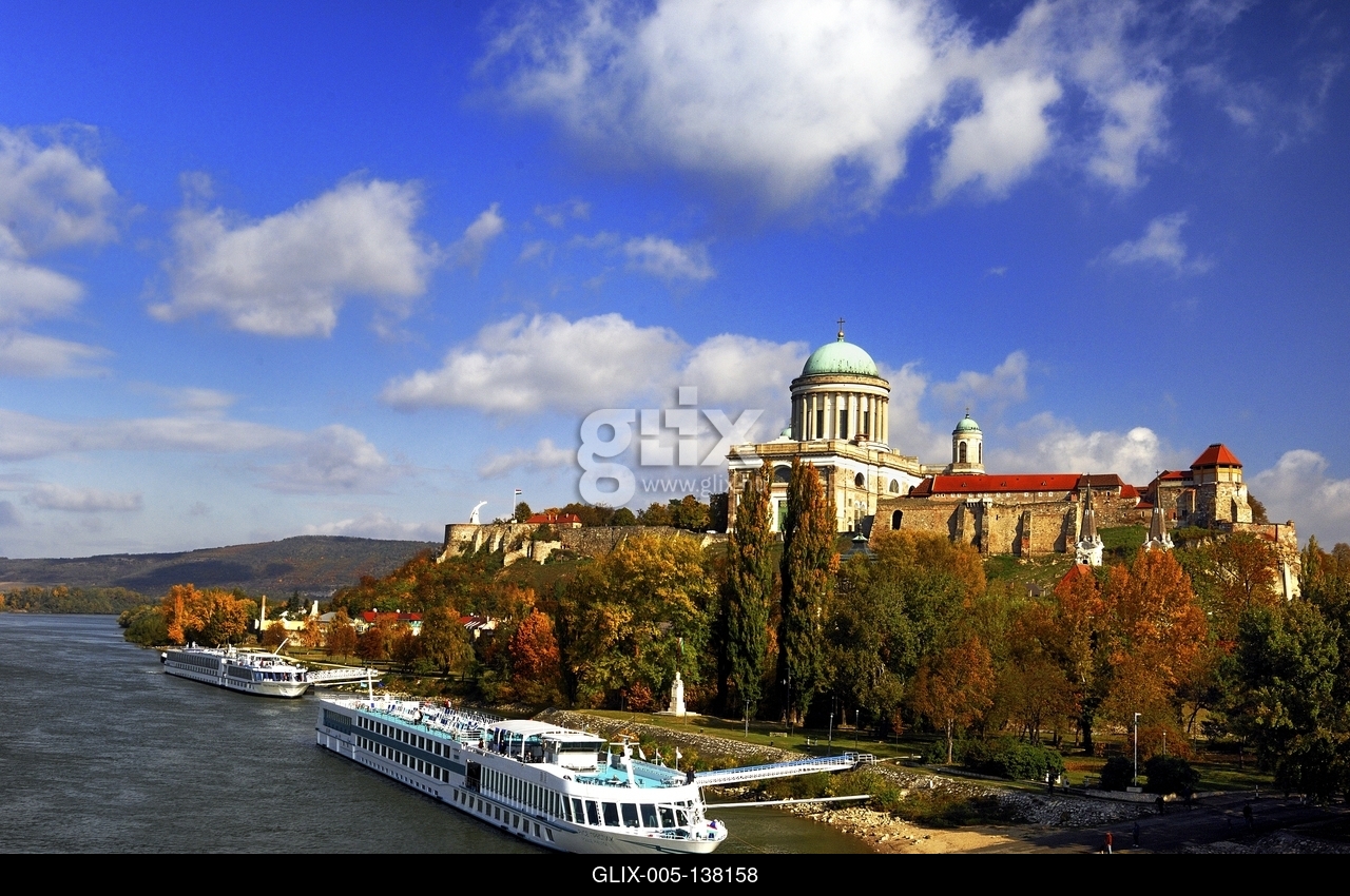 Az Esztergomi bazilika és a vár látképe a Dunával