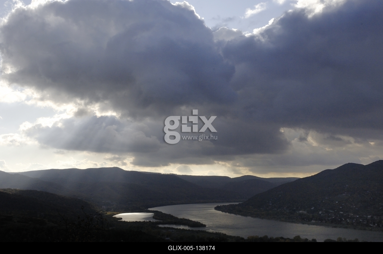 Visegrád, a Dunakanyar látképe a Fellegvárból, a Visegrádi-hegységgel és a Börzsönnyel.