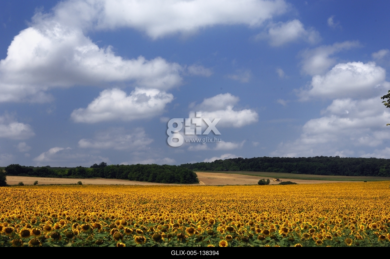 Somogyi táj virágzó napraforgó mezővel.