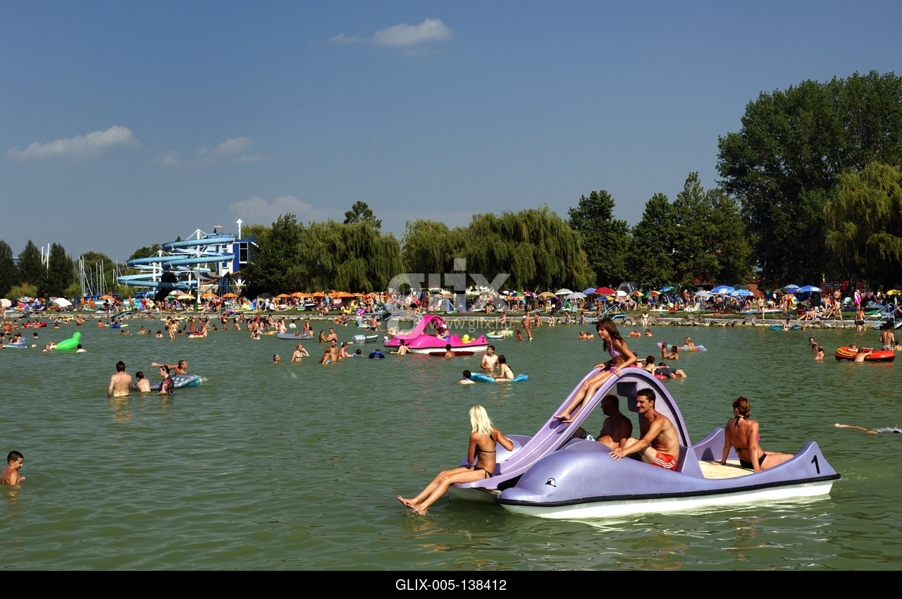 Strandolók a balatonlellei szabadstrandon
