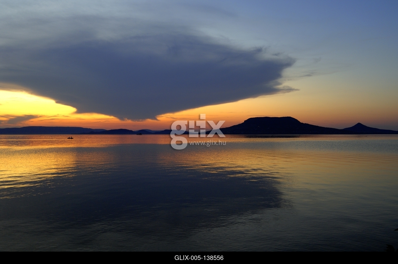 Balatoni naplemente Fonyódon, háttérben a Badacsony.