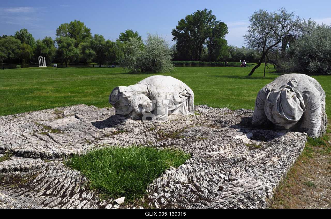 Aratópár szobor az Ópusztaszeri Nemzeti Történeti Emlékparkban. Melocco Miklós alkotása egy búzaörvénybe hajló aratópárt ábrázol.