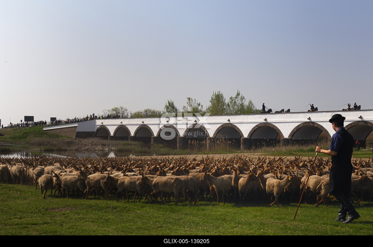 Hortobágy, magyar racka juhok a Kilenclyukú hídnál. Hortobágy évszázados hasznosítási módja az extenzív állattartás volt. Közép- és Nyugat-Európa egyetlen nagy kiterjedésű füves pusztáján a természettel együtt élő ember sajátos állattartási rendet alakított ki, melyhez egyedi módszerek, hagyományok társultak.