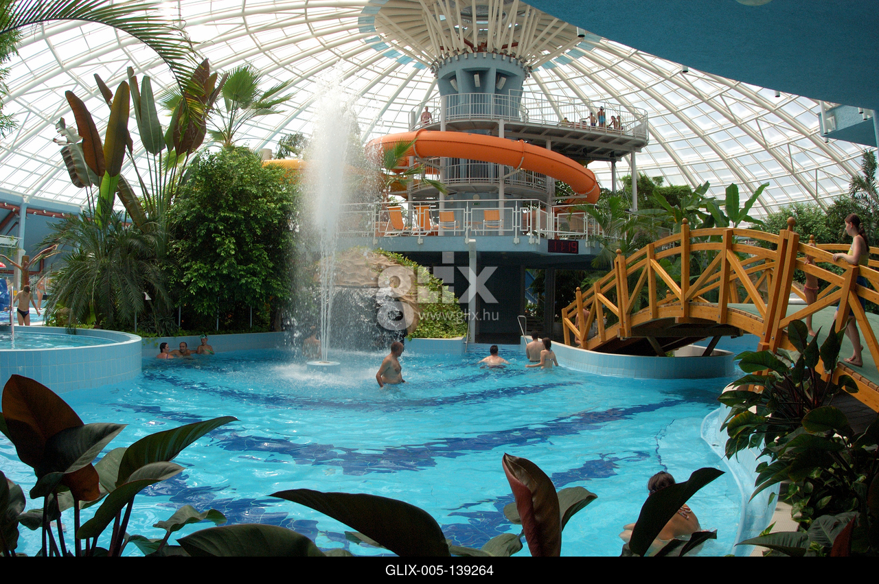 Debrecen, Aquaticum Mediterrán Élményfürdő. Az Aquaticum Mediterrán Élményfürdő egy 66 méter átmérőjű kupolacsarnokban található. A különleges létesítmény dús trópusi növényzete és számos élményeleme révén nyarat varázsol az év minden napjára, minden fürdővendég szívébe.