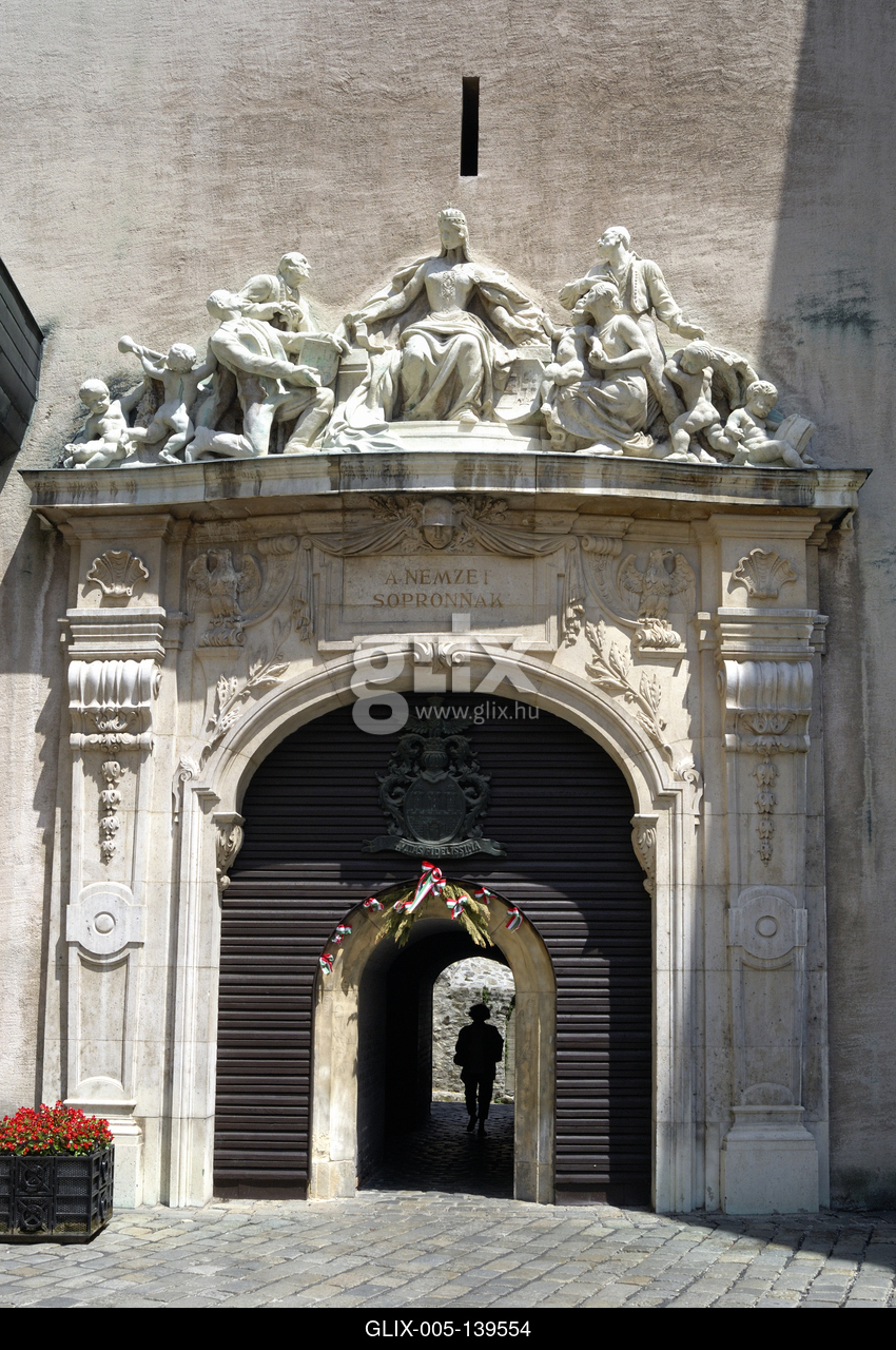 Sopron, Hűségkapu. A Tűztorony Fő tér felőli oldalát a Hűségkapu díszíti. Az 1921. december 14-i népszavazásnak állít emléket. Ennek eredményeképpen Sopron magyar maradt, és ezért kapta a "Leghűségesebb város" (Civitas Fidelissima) címet. A kapu fölött látható szoborcsoport Kisfaludy Strobl Zsigmond alkotása. Hungáriát ábrázolja, körülötte Sopron polgárai, amint kinyilvánítják hűségüket.