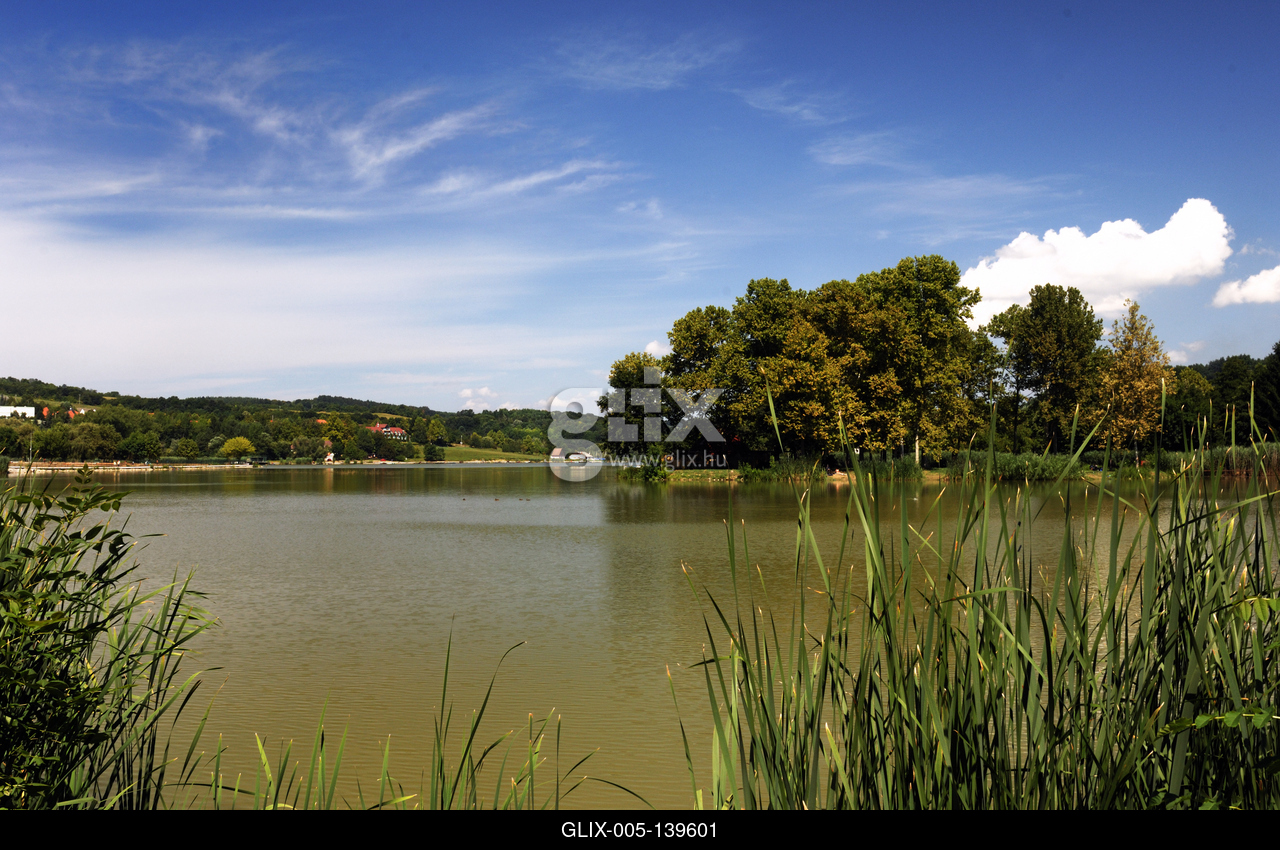 Az Orfűi-tó látképe. A tó Orfű és Mecsekrákos között fekszik. A gátakkal övezett partú tó mára már híres kirándulóközpont, a fürdőzők és horgászok paradicsoma lett.