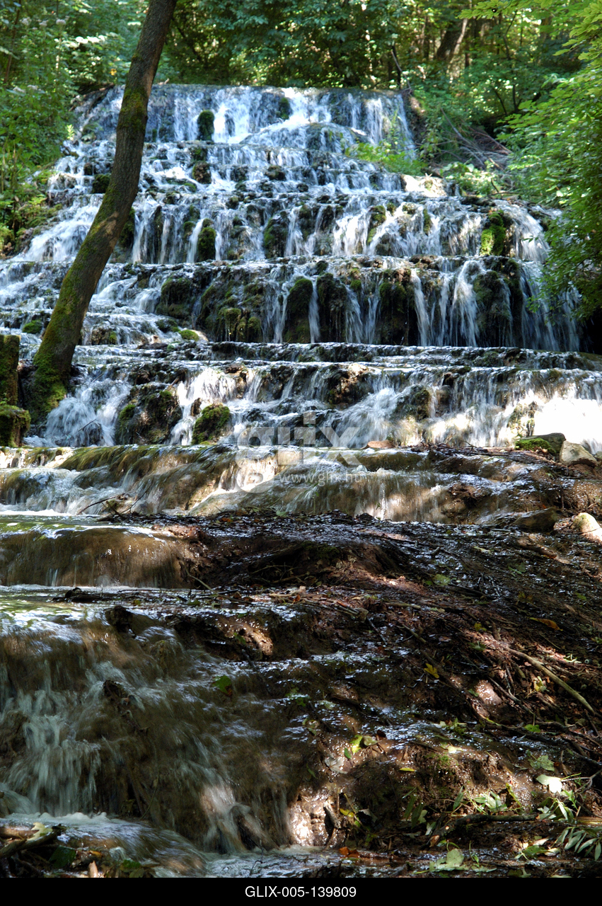 Szilvásvárad, a Fátyol-vízesés a Szalajka-völgyben. A Szalajka-patakot karsztforrások (Szikla-forrás, Szalajka-forrás) táplálják. Ezek vizéből, ahogy az a felszínre jut, az oldott széndioxid egy része elillan a levegőbe, az így túltelített vízből kicsapódik a kalcium-karbonát. A víz egy ilyen, mintegy 17 méter hosszú mésztufagát 18 teraszán zúdul le. Nevét egyesek szerint a vízpermet jellegzetes, fehér fátyláról, mások szerint a fehér, csipkéhez hasonlóan mintás mésztufáról kapta.
