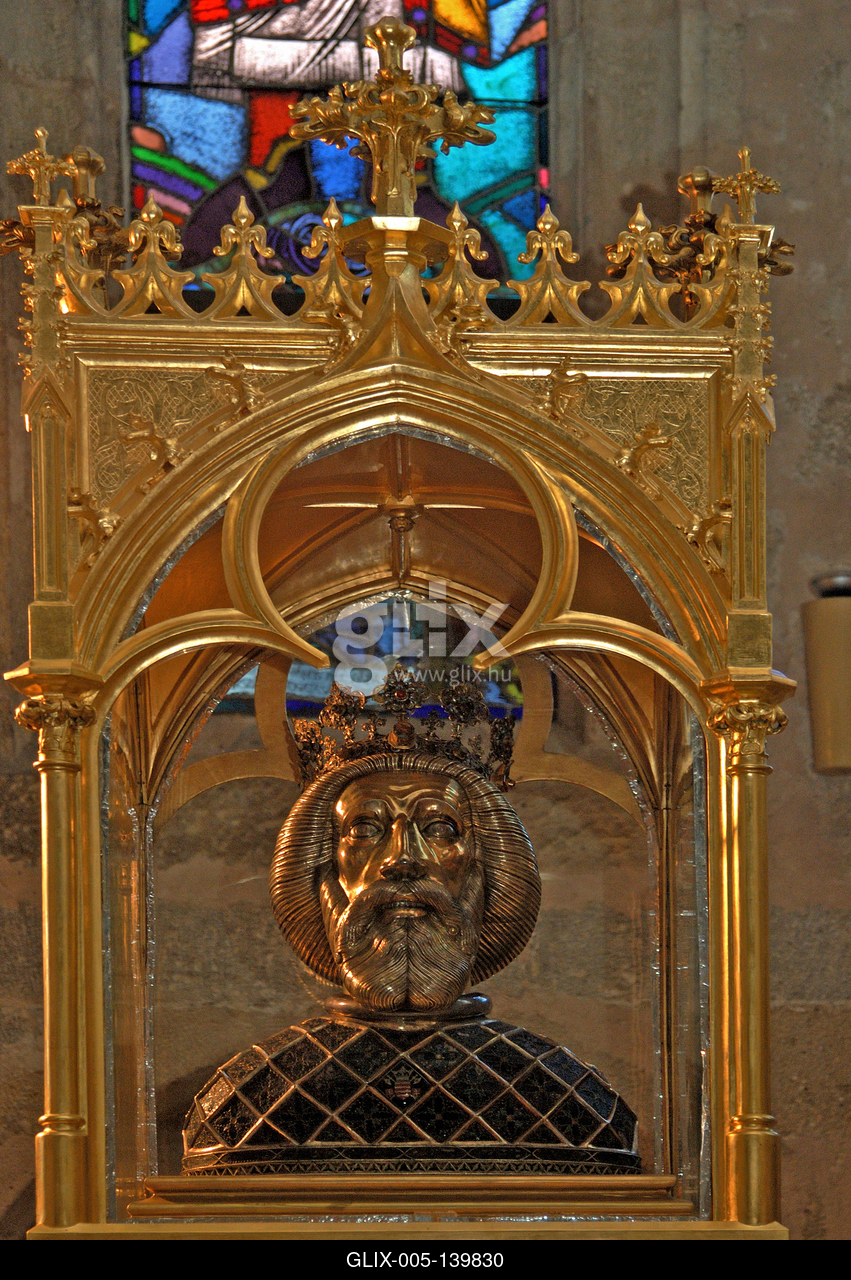 Győr, Szent László-herma a győri bazilika Héderváry-kápolnájában. A herma a magyar korona mellett a legfontosabb nemzeti és egyházi relikvia, amely a templom délnyugati oldalán elhelyezkedő gótikus Héderváry-kápolnában áll – ez őrződött meg a legteljesebben Hédervári János püspök (1386-1415) 1400 körüli építkezésből.