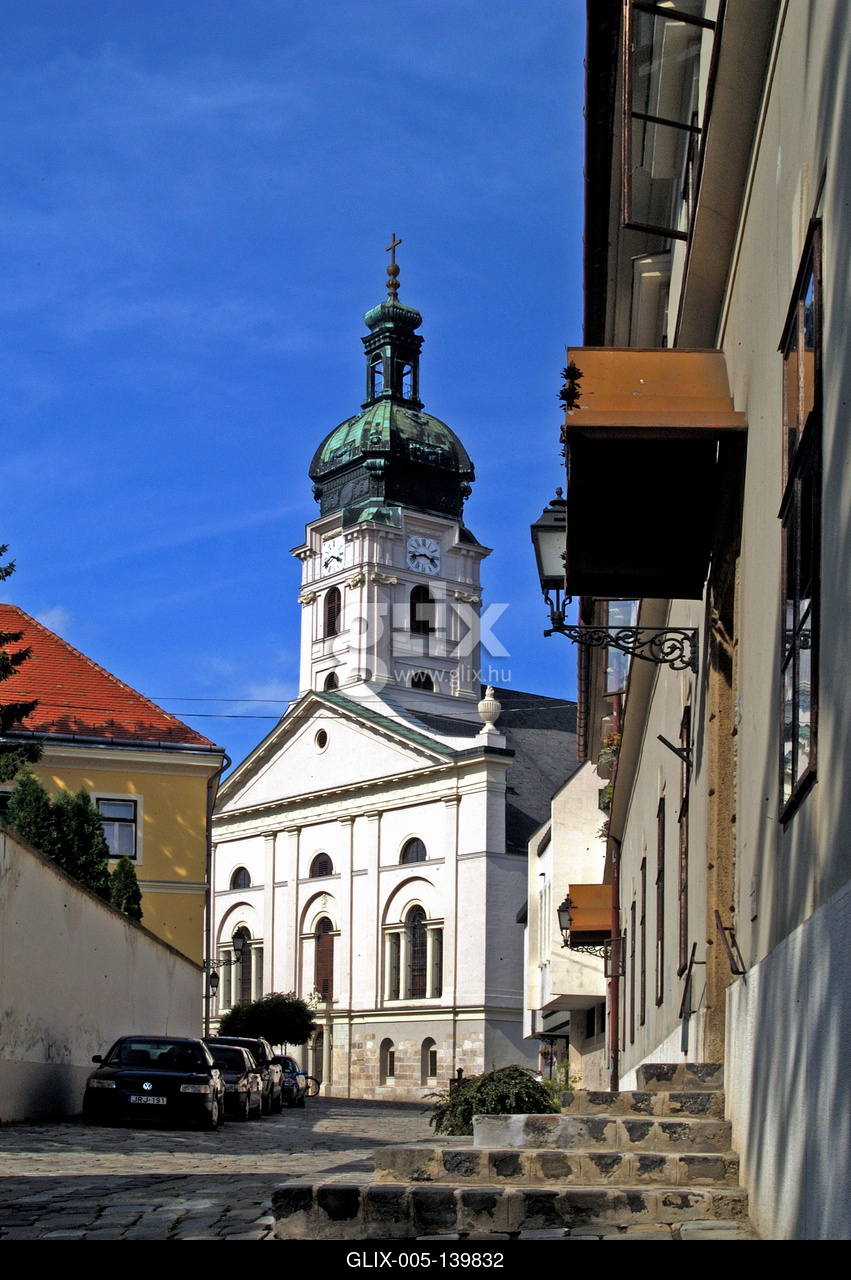A győri bazilika (Nagyboldogasszony-székesegyház) látképe. A bazilika a város legősibb részén, a Rába és a Duna összefolyásánál fekvő Káptalandombon áll, a Püspökvárral szemben. A Püspökvár mellett a város legrégibb és legjelentősebb műemléke. Itt őrzik Magyarország egyik kiemelkedően fontos nemzeti ereklyéjét, a Szent László-hermát. A katedrálisnak 1997-ben II. János Pál pápa kisbazilika rangot adományozott.