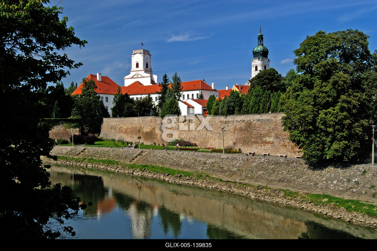 Győr, a Püspökvár látképe a Rába folyó partján. A Püspökvár épületegyüttese Győr történelmi belvárosában található. A bazilika mellett Győr legjelentősebb és legrégibb műemléke, a mindenkori győri püspök lakóhelye. A négyemeletes lakótorony a Püspökvár magját alkotja, felső részét barokk stílusban építették. Délről gótikus kápolnát építettek hozzá.
