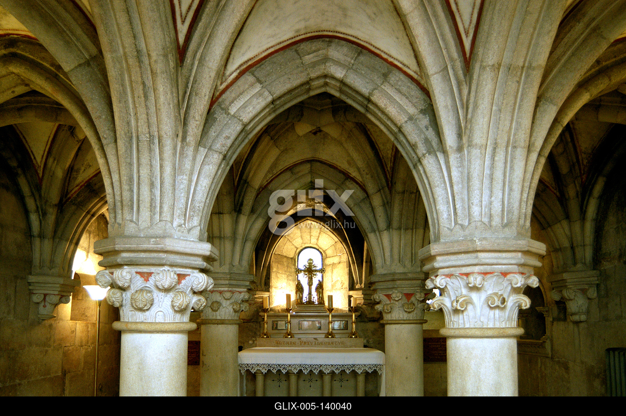 A Pannonhalmi Bencés Főapátság altemploma. A főhajó két szélén nyíló kapukon át megközelíthető altemplom hat oszlopon és konzolokon nyugvó keresztboltozatokkal fedett négyszögű tér. Keleti zárófalán három félköríves záródású ablak. Az oszlopok széles nyolcszögletű talplemezeken nyugszanak. A fejezeteket és a konzolokat tömött, bimbós levéldísz borítja.