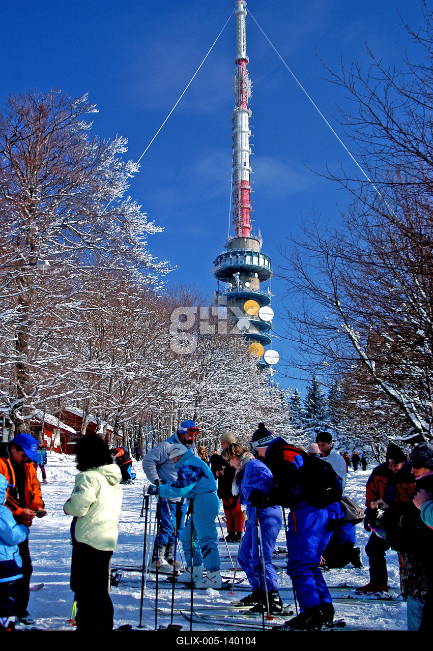 Téli táj Kékestetőn. A Kékes Magyarország legmagasabb hegycsúcsa. 1014 méter magas. A Kékes hegy az Északi-középhegységben, a Mátrában található. Innen indul az ország leghosszabb sípályája, mely 1,8 km hosszú. A hegyen álló tévétorony kilátóként is szolgál. A csúcson egy nemzeti színűre festett kő jelzi a magassági pontot.