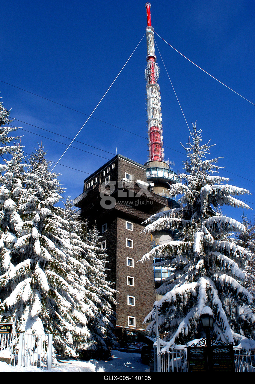 Téli táj Kékestetőn. A Kékes Magyarország legmagasabb hegycsúcsa. 1014 méter magas. A Kékes hegy az Északi-középhegységben, a Mátrában található. Innen indul az ország leghosszabb sípályája, mely 1,8 km hosszú. A hegyen álló tévétorony kilátóként is szolgál. A csúcson egy nemzeti színűre festett kő jelzi a magassági pontot.