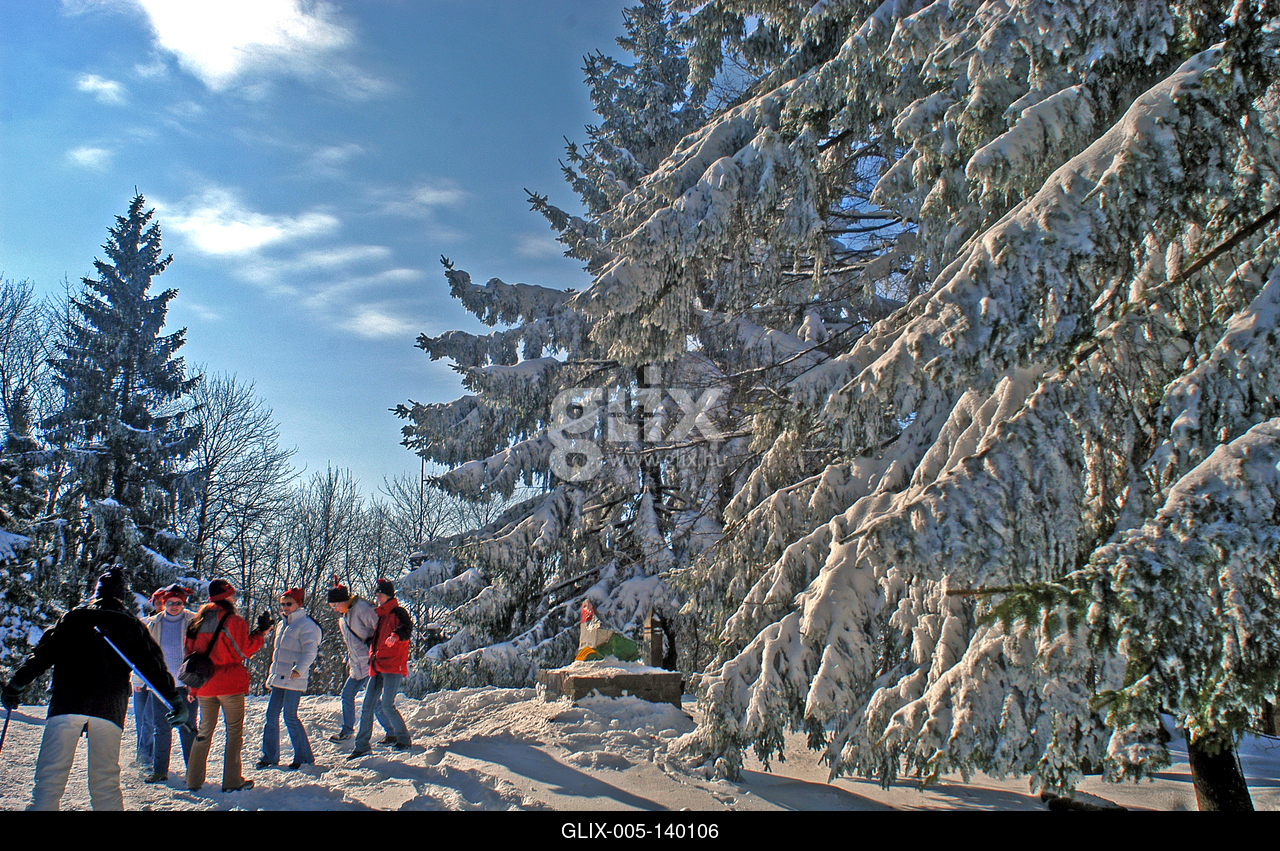 Téli táj Kékestetőn. A Kékes Magyarország legmagasabb hegycsúcsa. 1014 méter magas. A Kékes hegy az Északi-középhegységben, a Mátrában található. Innen indul az ország leghosszabb sípályája, mely 1,8 km hosszú. A hegyen álló tévétorony kilátóként is szolgál. A csúcson egy nemzeti színűre festett kő jelzi a magassági pontot.