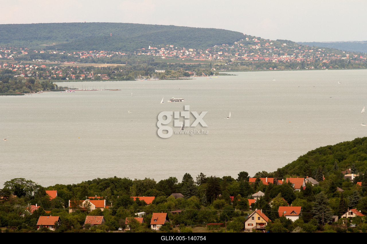 A Füredi öböl látványa Tihanyból, az Apáti-hegyi Őrtorony-kilátóból.