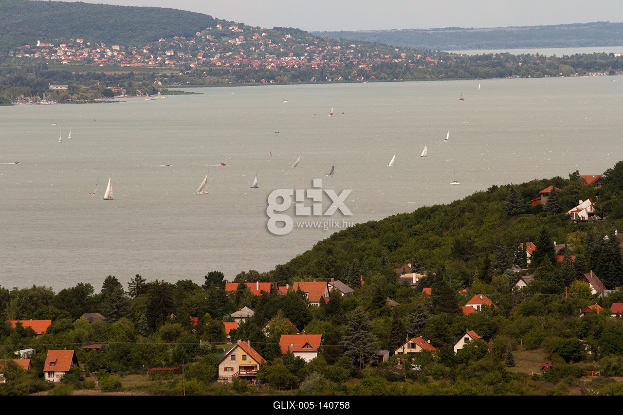 A Füredi öböl látványa Tihanyból, az Apáti-hegyi Őrtorony-kilátóból.