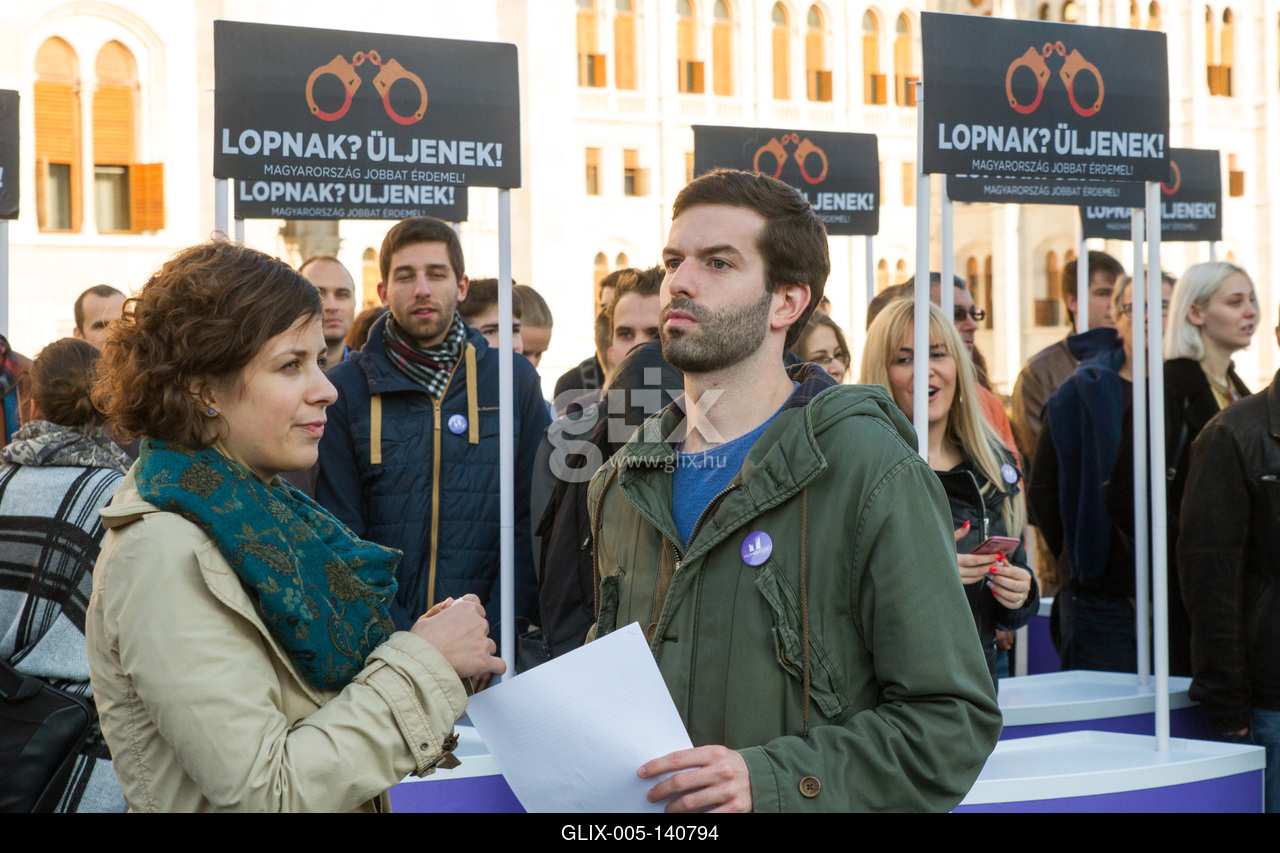 Budapest, 2017.09.18. A Momentum bejelentette a Kossuth téren, hogy csatlakozik a korrupcióellenes aláírásgyűjtéshez. A képen: Orosz Anna és Fekete-Győr András