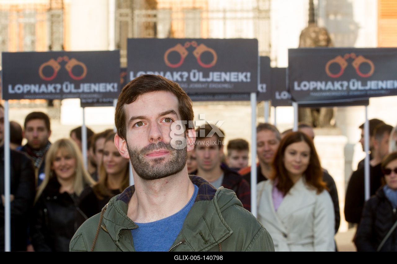 Budapest, 2017.09.18. A Momentum bejelentette a Kossuth téren, hogy csatlakozik a korrupcióellenes aláírásgyűjtéshez. A képen: Fekete-Győr András