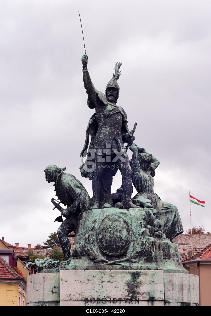 Egerben a Dobó téren áll a híres várvédõ Dobó Istvánnak emléket állító szoborcsoport. A háromalakos bronz kompozíció középsõ alakja maga, a kardját magasba lendítõ vitéz, Dobó. A kapitány jobbján egy várvédõ vitéz, míg balra tõle az ostromló törökökre követ hajító egri nõ. A nagyszabású, városi jelkép jelentõségû szoborcsoportot Stróbl Alajos készítette 1907-ben.