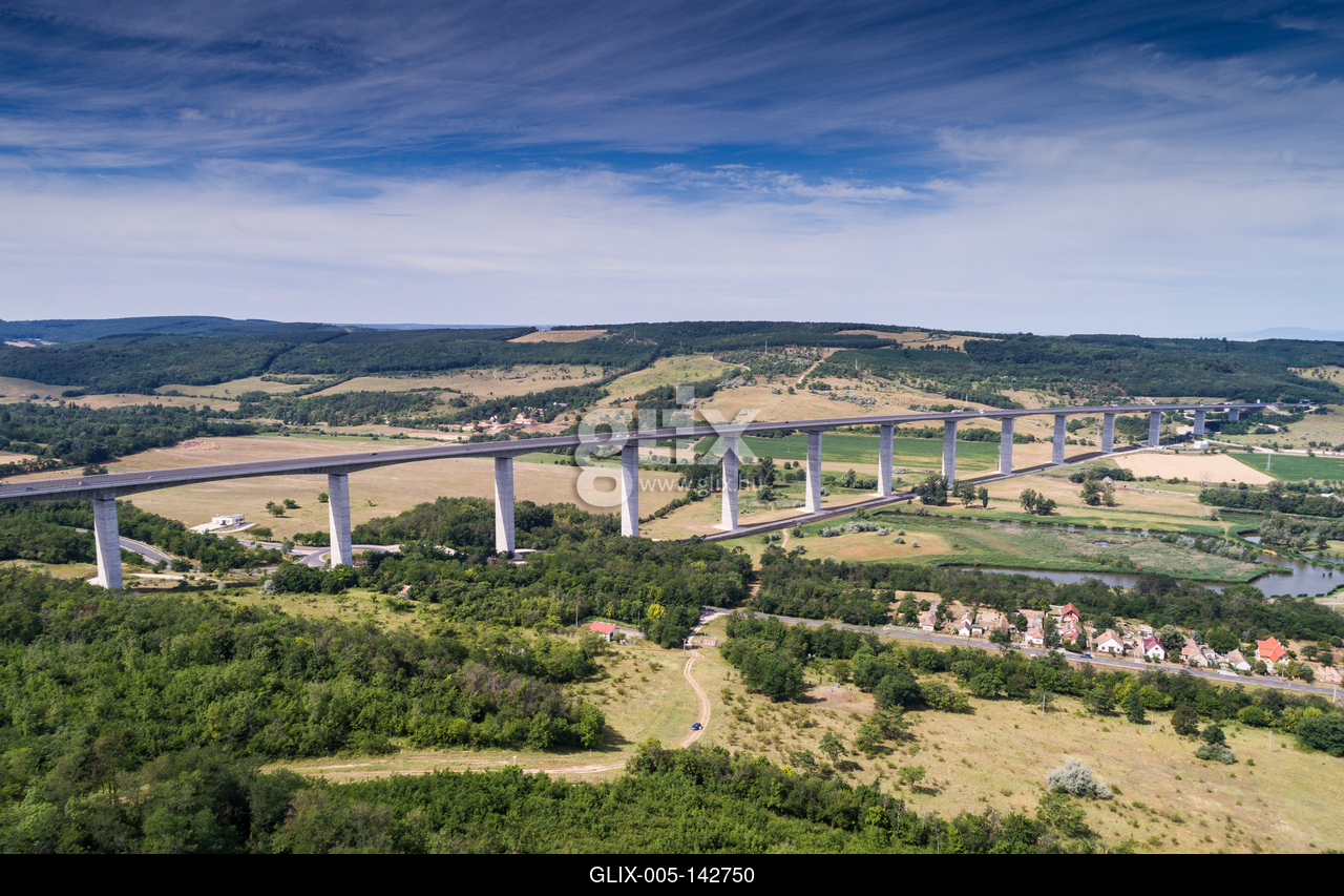 Viaduct of Koroshegy in Hungary. A Kőröshegyi völgyhíd viadukt az M7-es autópályán, Magyarország leghosszabb hídja. A Balaton déli partjával párhuzamosan, a Somogy megyei Zamárdi és Balatonszárszó között fut, Kőröshegy déli szomszédságában.