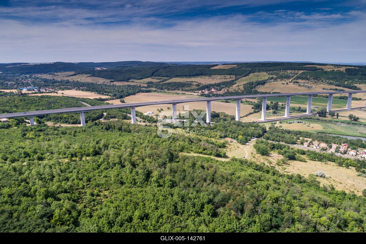 Viaduct of Koroshegy in Hungary. A Kőröshegyi völgyhíd viadukt az M7-es autópályán, Magyarország leghosszabb hídja. A Balaton déli partjával párhuzamosan, a Somogy megyei Zamárdi és Balatonszárszó között fut, Kőröshegy déli szomszédságában.