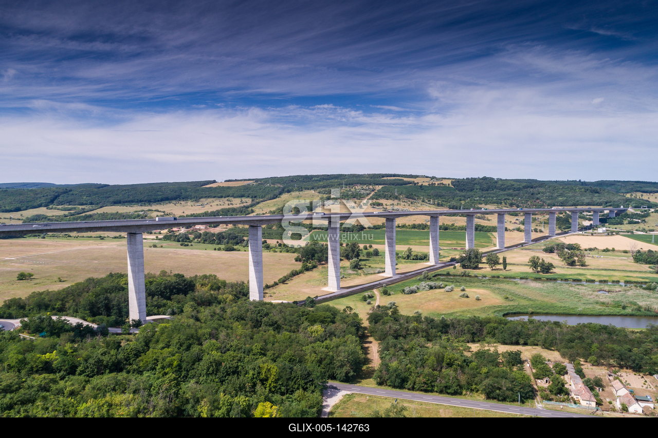 Viaduct of Koroshegy in Hungary. A Kőröshegyi völgyhíd viadukt az M7-es autópályán, Magyarország leghosszabb hídja. A Balaton déli partjával párhuzamosan, a Somogy megyei Zamárdi és Balatonszárszó között fut, Kőröshegy déli szomszédságában.