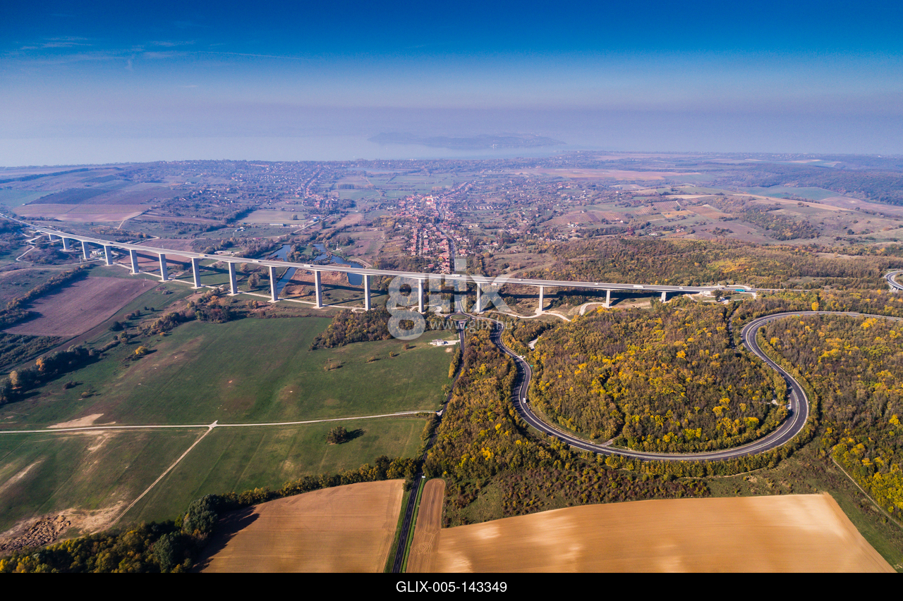 Viaduct of Koroshegy in Hungary. A Kőröshegyi völgyhíd viadukt az M7-es autópályán, Magyarország leghosszabb hídja. A Balaton déli partjával párhuzamosan, a Somogy megyei Zamárdi és Balatonszárszó között fut, Kőröshegy déli szomszédságában.