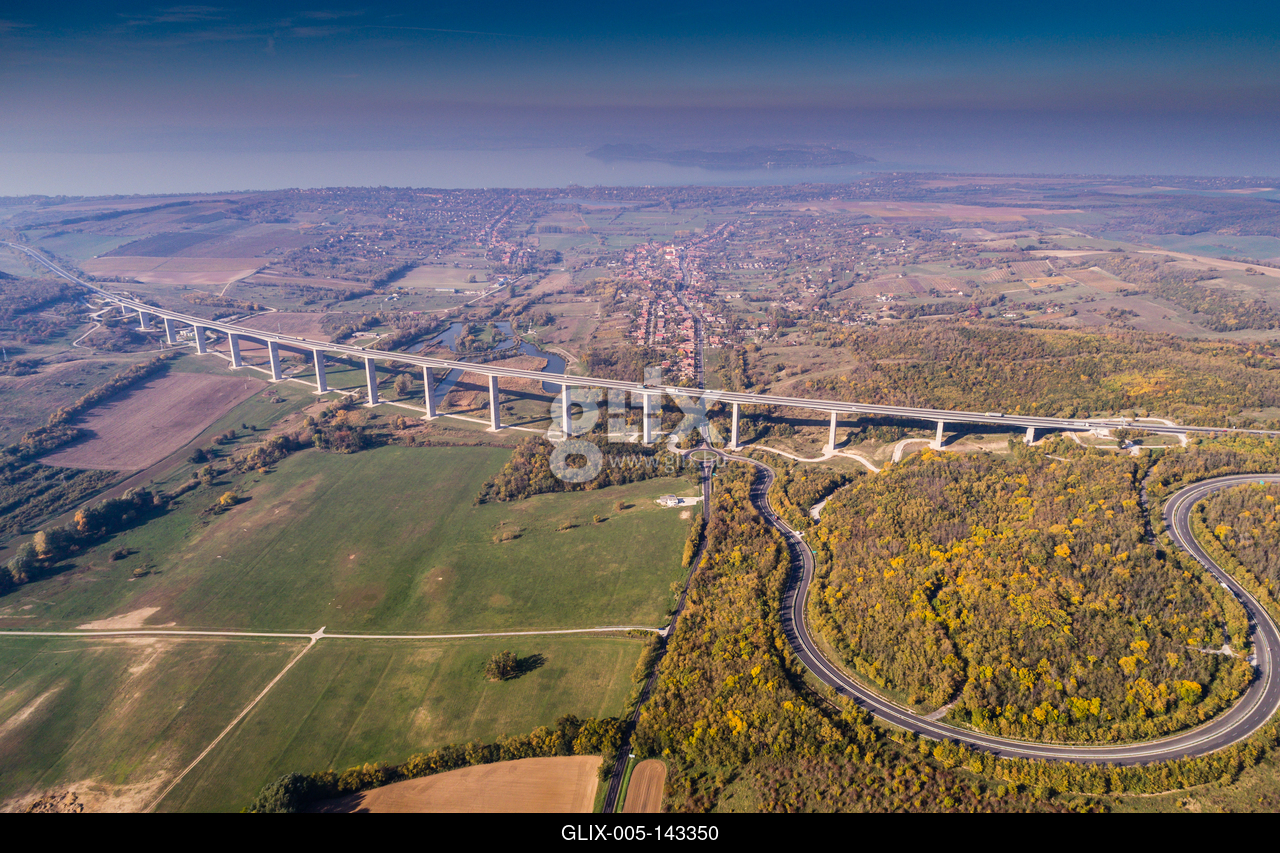 Viaduct of Koroshegy in Hungary. A Kőröshegyi völgyhíd viadukt az M7-es autópályán, Magyarország leghosszabb hídja. A Balaton déli partjával párhuzamosan, a Somogy megyei Zamárdi és Balatonszárszó között fut, Kőröshegy déli szomszédságában.