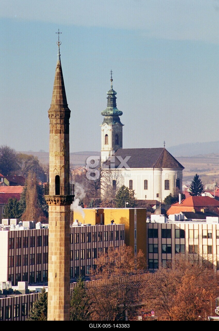 A faragott homokkőből épült torony tizennégyszög alaprajzú és 40 m magas. Európa legészakibb török kori emléke. A keleti oldalához épített dzsámit városrendezési okokból 1841-ben lebontották.Képünkön a Minaret mögött a Ráctemplom